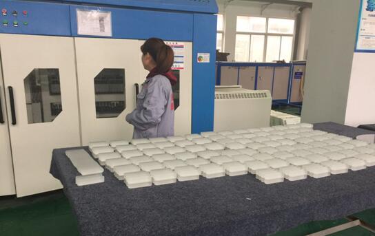質(zhì)檢部劉經(jīng)理和該公司總經(jīng)理在粗加工車間交流玻璃加工細(xì)節(jié)