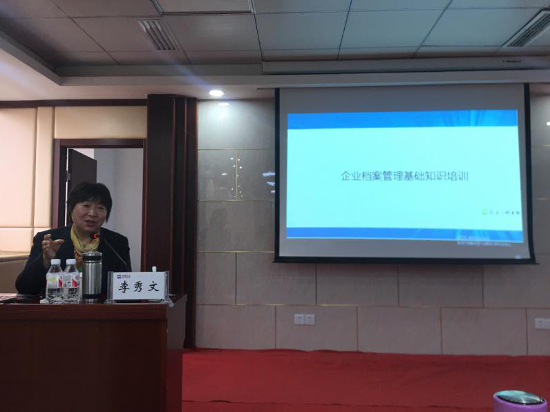 圖為華控集團(tuán)副總經(jīng)理、副研究館員李秀文講授干部人事檔案管理
