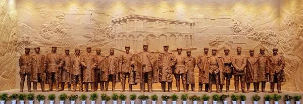 我曾經(jīng)參觀過(guò)遵義會(huì)議會(huì)址。在遵義會(huì)議紀(jì)念館門前的大門正上方,掛著一塊黑漆金匾,上面“遵義會(huì)議會(huì)址”六個(gè)金光閃閃的大字俏俊飄逸、豪放酣暢,這是1964年由毛澤東親筆題寫,同時(shí)也是毛澤東一生中為中國(guó)革命舊址留下的唯一一幅墨寶。遵義會(huì)議會(huì)議室里并排懸掛著參加會(huì)議的8位政治局委員的照片,他們是:毛澤東、周恩來(lái)、洛甫(張聞天)、博古(秦邦憲)、陳云、劉少奇、朱德、王稼祥。