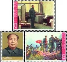 1965年1月31日,紀(jì)109《遵義會(huì)議三十周年》紀(jì)念郵票發(fā)行,全套共三枚,分別為“決戰(zhàn)前夕”、“毛主席像”、“婁山關(guān)大捷”。該套郵票第一枚“決戰(zhàn)前夕”,表現(xiàn)的是面對(duì)墻壁上的軍事地圖聚精會(huì)神謀劃作戰(zhàn)方案的毛澤東,栩栩如生地展現(xiàn)出毛澤東運(yùn)籌帷幄、巧捕戰(zhàn)機(jī),指揮紅軍贏得婁山關(guān)大捷、四渡赤水等軍事勝利的光輝形象。圖案是以著名畫家高虹的同名畫作為主圖的。第二枚郵票的圖案,采用的是20世紀(jì)60年代后國(guó)內(nèi)廣為發(fā)行的毛澤東標(biāo)準(zhǔn)像。第三枚“婁山關(guān)大捷”表現(xiàn)的是毛澤東等在1935年2月底登臨婁山關(guān)指揮作戰(zhàn)的情景。郵票畫面上,婁山萬(wàn)峰插天,紅軍戰(zhàn)士急速前進(jìn),毛澤東站在高地凝視遠(yuǎn)方。該套郵票均標(biāo)有“遵義會(huì)議三十周年1935―1965”字樣。其中(351)/8分/決戰(zhàn)前夕/1000萬(wàn)枚;(352)/8分/毛主席像/1000萬(wàn)枚(353)/8分/婁山關(guān)大捷/1000萬(wàn)枚。發(fā)行數(shù)量:1000萬(wàn)套。全套面值:0.24元。設(shè)計(jì)者:劉碩仁。
