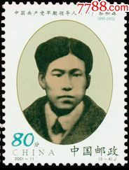 為紀念在解放全中國的革命事業(yè)中嘔心瀝血,英勇戰(zhàn)斗,壯烈犧牲的中國共產(chǎn)黨的無數(shù)英雄兒女,中國郵政在中國共產(chǎn)黨建黨80周年之際,發(fā)行了《中國共產(chǎn)黨早期領(lǐng)導人(一)》紀念郵票1套5枚,表達對革命先輩們的崇高敬仰。這是2001年6月28日發(fā)行的紀念郵票,設(shè)計者是王虎鳴。
