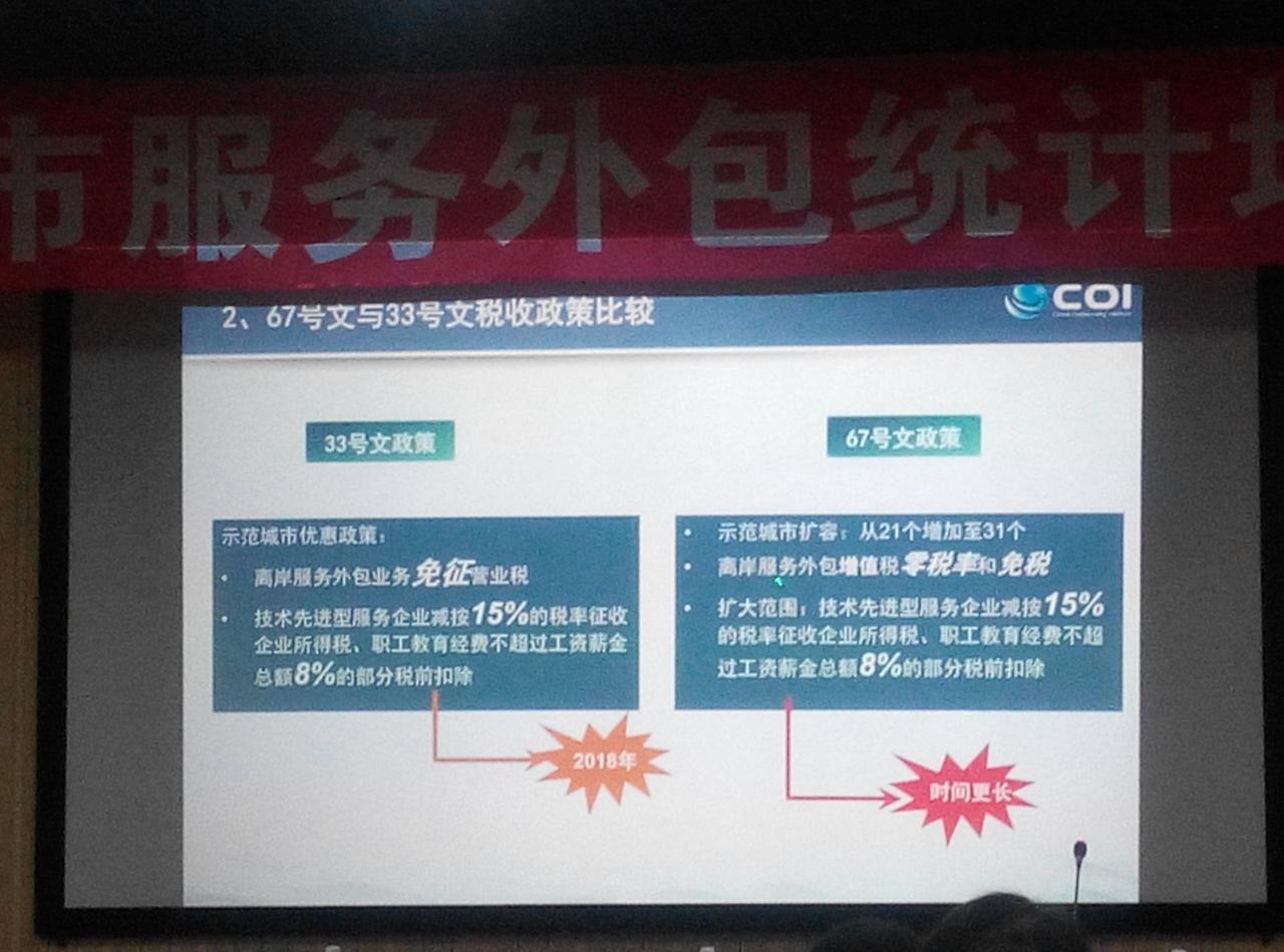 通過(guò)本次培訓(xùn)清晰了什么是服務(wù)外包;服務(wù)外包的分類:2014年現(xiàn)行統(tǒng)計(jì)標(biāo)準(zhǔn)分為三個(gè)門類(ITO信息技術(shù)外包、BPO業(yè)務(wù)流程外包、KPO知識(shí)流程外包),九個(gè)大類(軟件研發(fā)外包、信息技術(shù)服務(wù)外包、運(yùn)營(yíng)和維護(hù)服務(wù)、內(nèi)部管理外包服務(wù)、業(yè)務(wù)運(yùn)營(yíng)外包服務(wù)、供應(yīng)鏈外包服務(wù)、商務(wù)服務(wù)外包、技術(shù)服務(wù)外包、研發(fā)服務(wù)外包),35個(gè)中類;服務(wù)外包與服務(wù)貿(mào)易之間的關(guān)系等。服務(wù)外包產(chǎn)業(yè)的發(fā)展在國(guó)家政策《國(guó)務(wù)院關(guān)于促進(jìn)服務(wù)外包產(chǎn)業(yè)加快發(fā)展的意見》國(guó)發(fā)[2014]67號(hào)文件(離岸服務(wù)外包增值稅零稅率和免稅,擴(kuò)大范圍:技術(shù)先進(jìn)型服務(wù)企業(yè)減按15%的稅率征收企業(yè)所得稅,職工教育經(jīng)費(fèi)不超過(guò)工資薪金總額8%的部分稅前扣除)的支持力度下,不斷成長(zhǎng)提升。通過(guò)建立的有效溝通和營(yíng)銷渠道,構(gòu)建交易平臺(tái),積極走出去,尋求與國(guó)際接軌的走向國(guó)際的策略,借助云計(jì)算、大數(shù)據(jù)等新技術(shù)融合共同發(fā)展。最后,主辦方秦皇島市商務(wù)局代表做了總結(jié)發(fā)言,還為大家精心準(zhǔn)備了冷餐,就餐的同時(shí)大家相互交流,彼此相互了解。