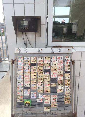 我們還是像往常一樣,按時(shí)上班,按時(shí)下班。當(dāng)大家出門打卡的時(shí)候看到了門口卡機(jī)下面的卡都眼前一亮,由于長時(shí)間的循環(huán)利用,每張卡都有不同程度的損壞,由于風(fēng)吹日曬雨淋,卡上面的名字和號(hào)碼也已經(jīng)看不清楚,這樣的卡一直讓我們很苦惱,找不到自己的卡,耽誤好多時(shí)間。這些點(diǎn)點(diǎn)滴滴,被管理部看在了眼里,他們放下手里其他的工作,把上百張的卡拿回去,重新粘好,然后寫上清晰的名字和號(hào)碼,封上透明膠防止脫落,并且用紅黑倆種顏色正反面標(biāo)注,紅色代表在公司,黑色表示不在公司。