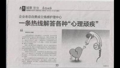 摘自《秦皇島晚報(bào)》(2014年10月15日,B15版):情感護(hù)理是一項(xiàng)新型的心靈慈善事業(yè),其以心理咨詢方式切入,但又不僅僅限于心理咨詢,更側(cè)重于人生觀、價(jià)值觀、幸福觀的引導(dǎo)。秦皇島市市民情感護(hù)理中心的創(chuàng)始人名叫劉吉川,今More