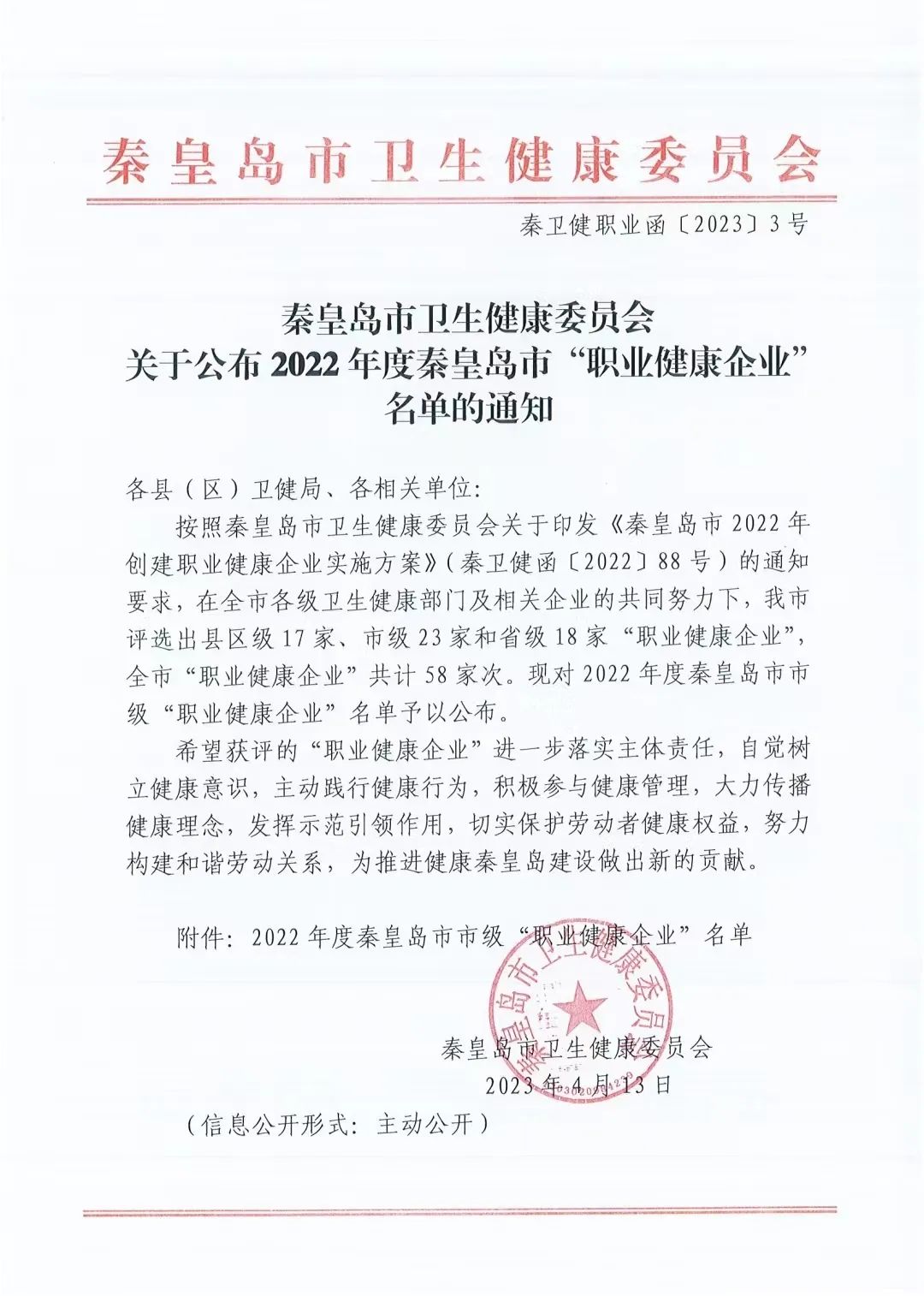 2023年4月21日,我公司獲悉來自秦皇島市衛(wèi)生健康委和秦皇島市海港區(qū)衛(wèi)生健康局的文件通知,秦皇島華電測(cè)控設(shè)備有限公司獲評(píng)為2022年度市級(jí)“職業(yè)健康企業(yè)”。為更好More